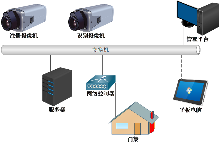 图 动态人脸识别门禁系统拓扑图